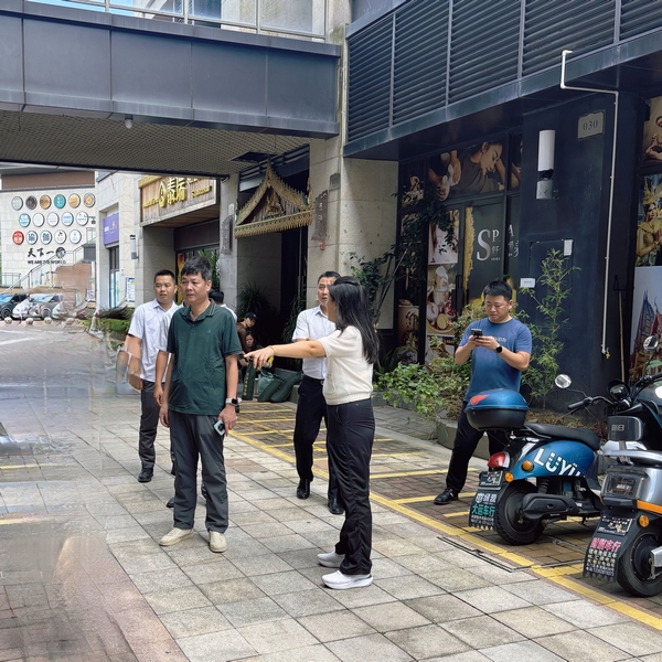 指令下达后,指挥组兵分多路,与上级督办人员一同深入工业园、住宅小区、办公楼等重点区域,现场对接项目一线,确保沙袋、挡水板、抽水泵等关键物资调配到位,构建起“集团—物业—项目”三级联动、高效协同的指挥机制。